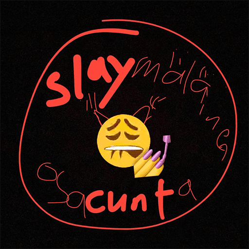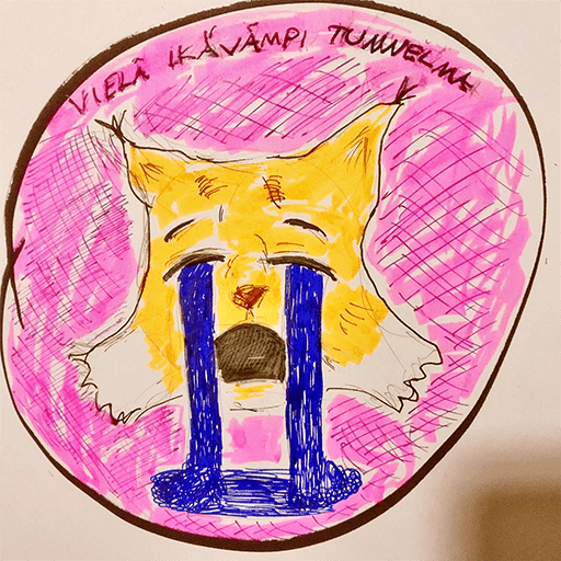 Luonnos. Värit ja teksti samaa tyyliä kuin "Ikävä tunnelma"-haalarimerkissä, mutta eri värinen.
